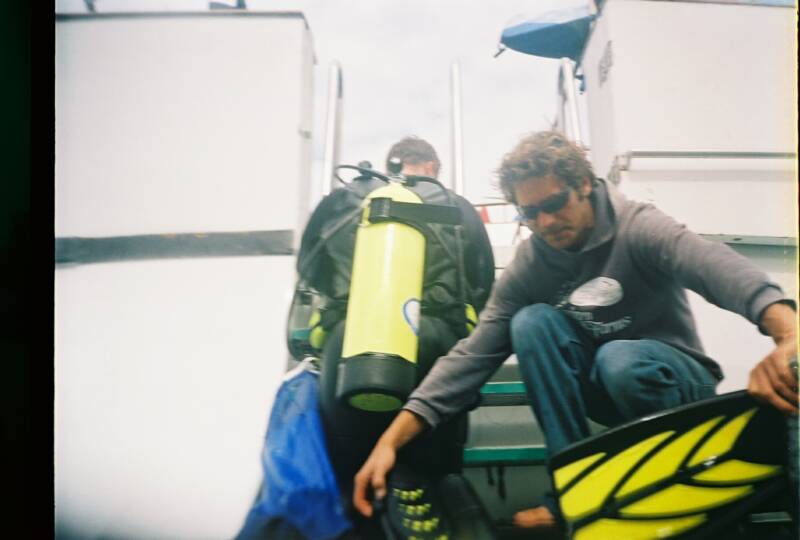 This dive boat would go out on either two or three night trips to the Channel Islands. We would usually start by heading to San Miguel or Santa Rosa Islands. Then end up at Santa Cruz Island where we would head back across the channel to the Santa Barbara Harbor. The big picture is of the crew and captain. Jeff, Sam, Teresa, and I think Gary down below. A pretty funny group none the less.